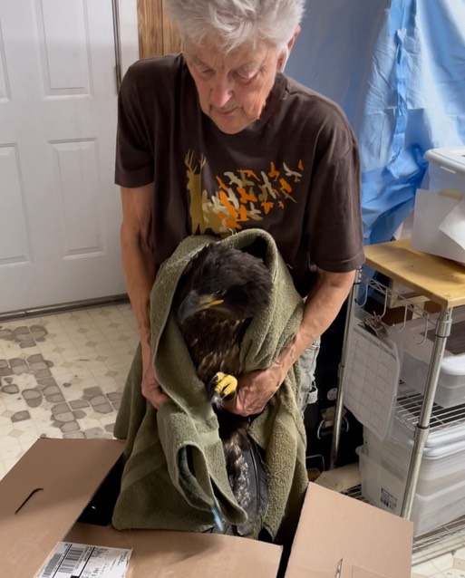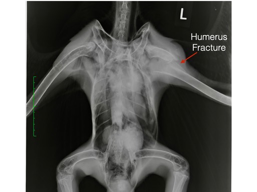 This young Bald Eagle was found on the ground near Moses Lake, WA. The land owner noticed there seemed to be a problem with one wing. Sadly, he was correct. The eagle’s left humerus was fractured. Even with surgery the likelihood of the eagle being able to fly well enough to be released was very poor. He was humanely euthanized.